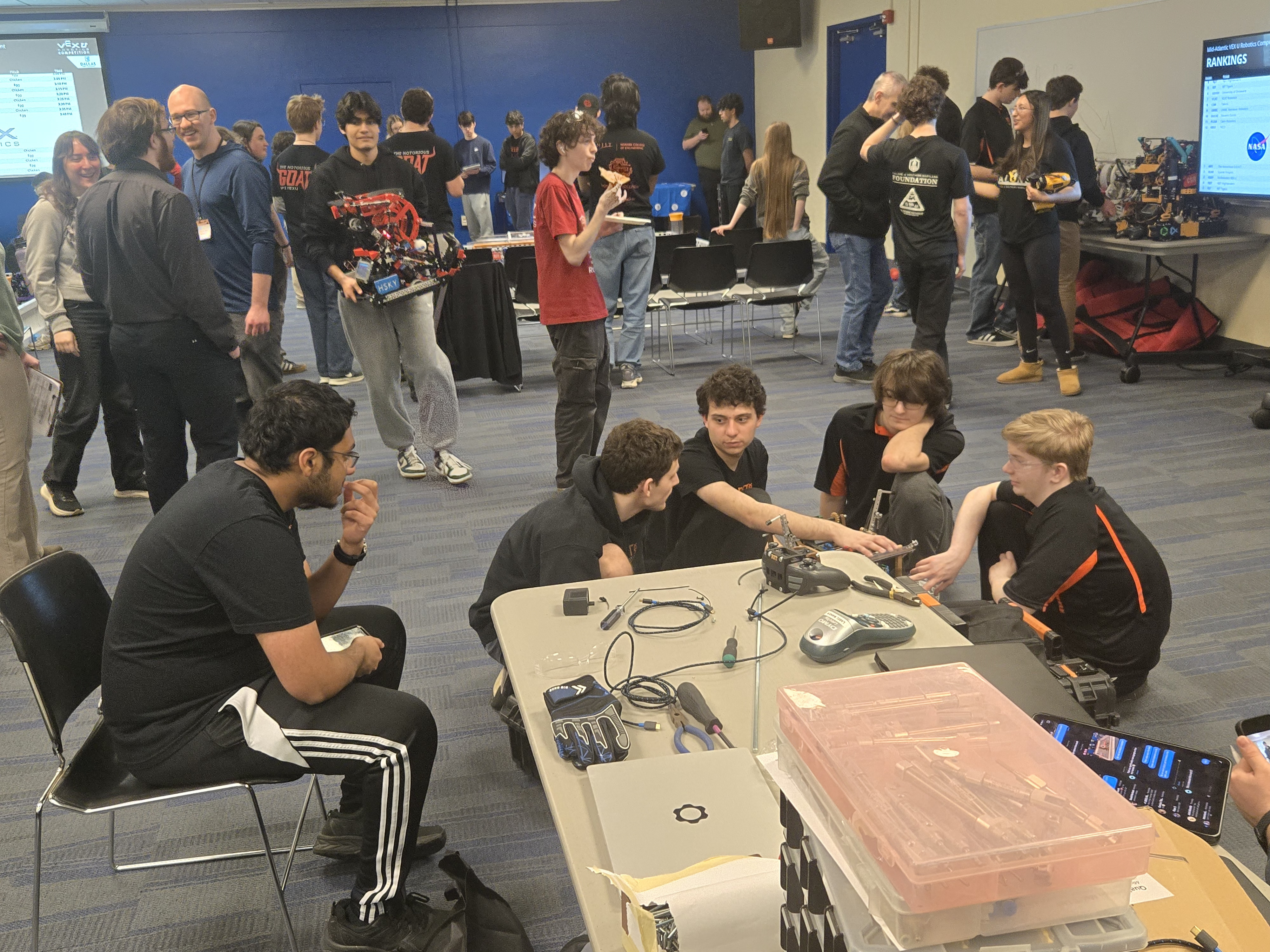 As one of RIT's only performance robotics team, we aim to balance a competitive yet entertaining environment. Our team designs, builds, and programs a robot that competes across the nation in VEX's annual challenge.